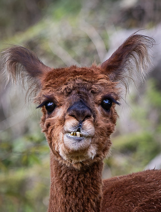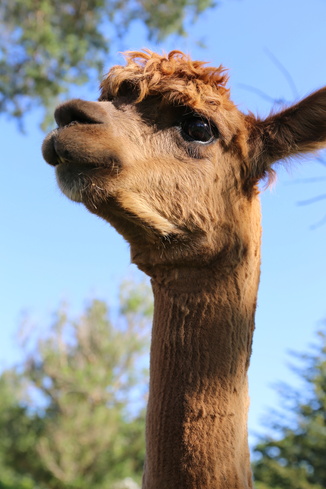 | Luonne | Ihana alpakkaorhi, joka tulee varmasti katsomaan kipittäen jokaista, joka tulee lähettyville. Hyvin rauhallinen ja hyvä talutettava. |