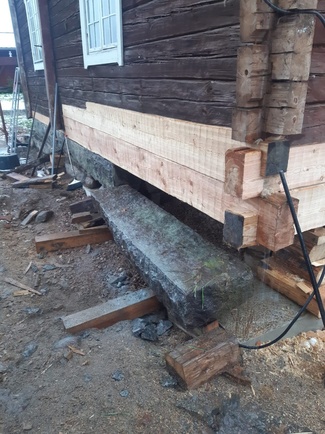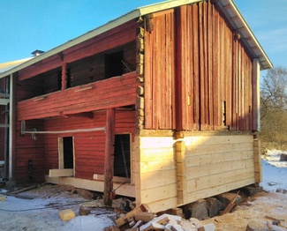 Teemme vaurioituneiden hirsirakenteiden korjausta ja hirsitalojen kengityksiä sekä rakennusten nostoa, oikaisua ja tuentaa.