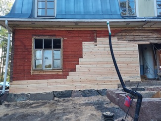 Teen kaikkea korjausrakentamista: hirrenvaihdot, hirsikorjaukset ja -paikkaukset, lahovaurioiden korjaukset, ala- ja välipohjatyöt, rossilattian korjaukset, muut lattiakorjaukset, eristystyöt, ulkovuoriasennukset, huokolevyasennukset, ikkunakorjaukset, muuraustyöt, rappaukset, paneloinnit, listoitukset. kivijalkojen korjaukset ja muut pintatyöt sekä tarvittavat purkutyöt.