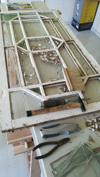 Lasitus, kittaus ja maalaus onnistuu - puutyöt teetän puusepällä. Vanhaa lasia löytyy pieniä eriä.