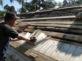 Teen monenlaisia perinnerakennusten korjauksia päre- ja malkakattojen rakennuksesta ja korjauksesta hirsien vaihtoon ja ilmastointiaukkojen lisäämiseen.