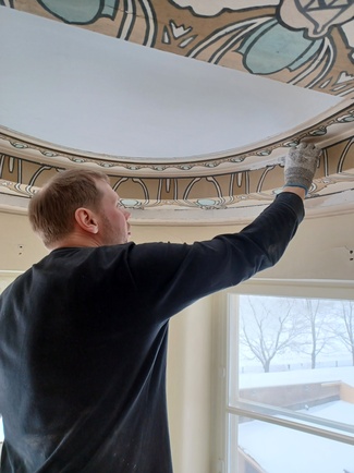 - Munkkiniemen kadettikoulu, koristemaalattujen kattojen restaurointi