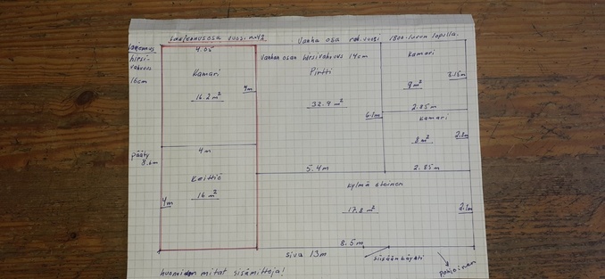 Rakennusvuosi: 1800-luvun loppu, uusi osa vuonna 1942 (piirroskuvassa punaisella)