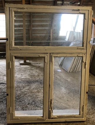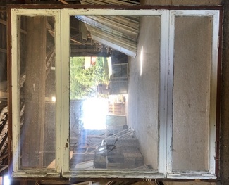 Muuta: Sisä- ja ulkoikkunat (4 x 3-ruutuiset, 3 x 1-ruutuiset, huom! toinen sisäyläikkuna puuttuu)