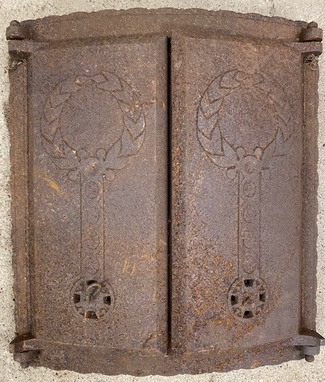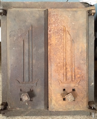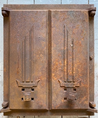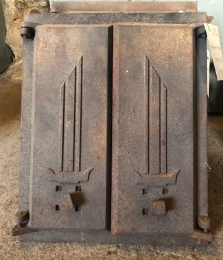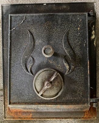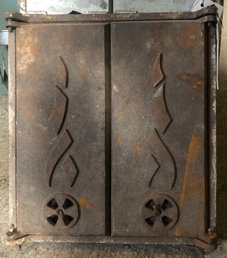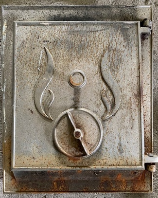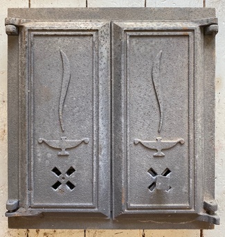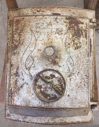 Muuta: Kaareva, luukku on tarkoitettu noin 60 cm halkaisijaltaan olevaan uuniin. Kipinäsuojalla.