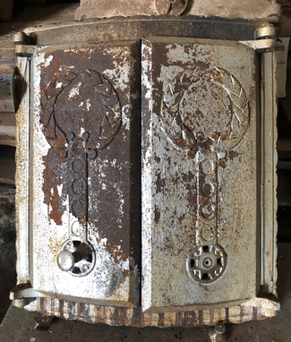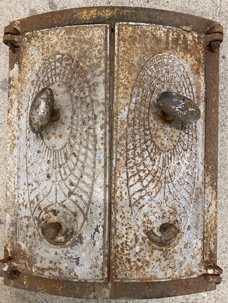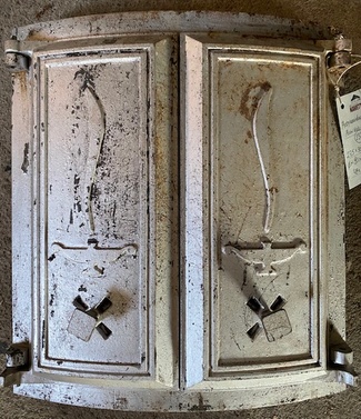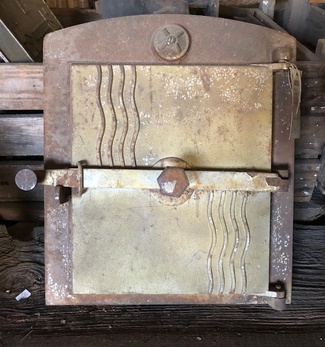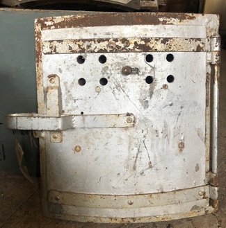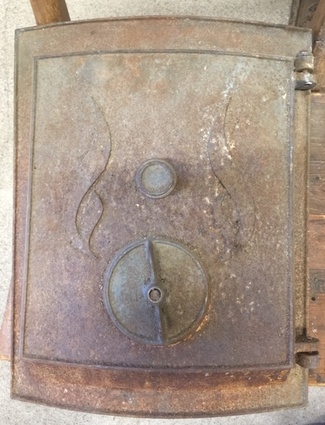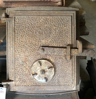 Muuta: Kaareva, luukku on tarkoitettu noin 80 cm halkaisijaltaan olevaan uuniin. Nuppi puuttuu.