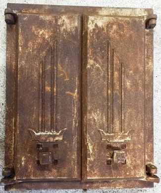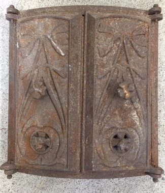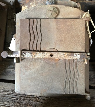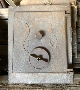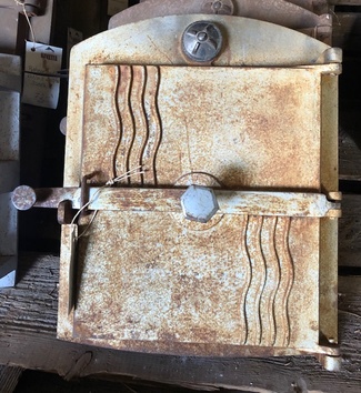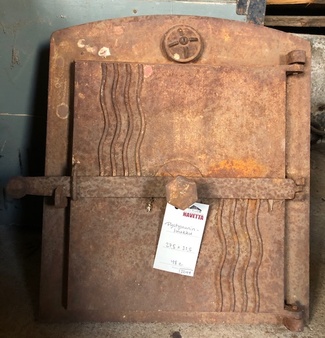 Muuta: Kaareva, luukku on tarkoitettu noin 80 cm halkaisijaltaan olevaan uuniin, kipinäsuoja, nupit puuttuvat.